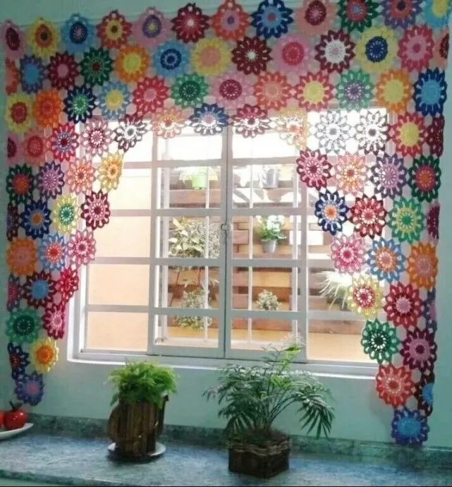 Идея оригинальных занавесок из мотивов. Схема цветочка.