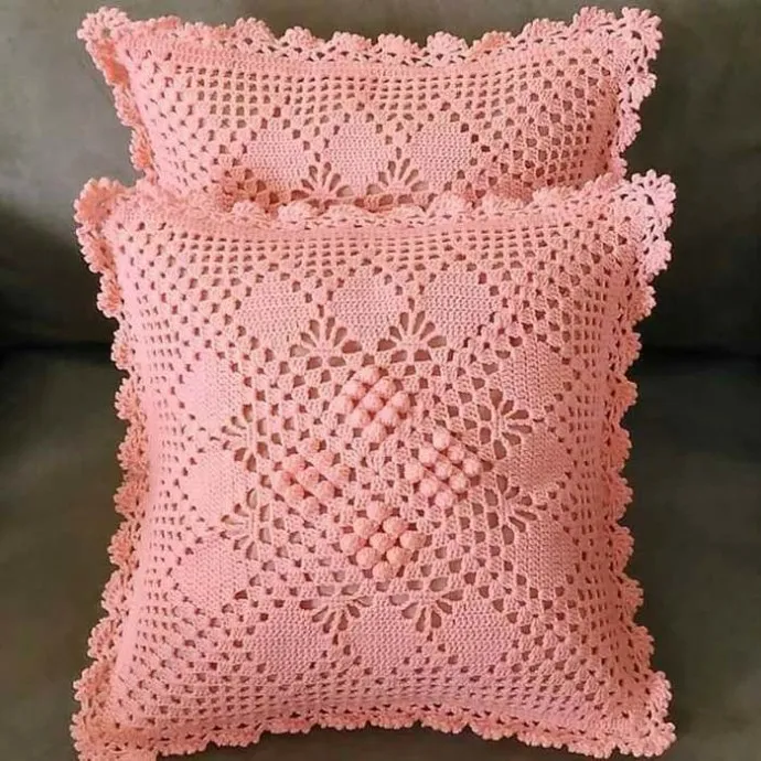 Очень красивая наволочка розовая на подушку Как ее связать нужна схема где можно взять схему Красота!!!