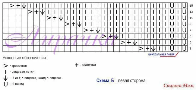 Спасибо! Интересная шаль. А ещё подскажите, пожалуйста, набирать надо 15 петель? Т.е. 1 ряд в схеме будет, действительно, 1-м рядом? Или надо предварительно создать уголок?
