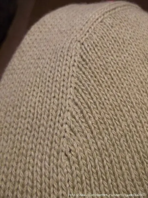 Первое фото. Вершина оката рукава (я не знаю, как правильно называется эта часть оката, но я так назвала самую выпуклую его часть) у меня составляет 15 см = 32 петли.