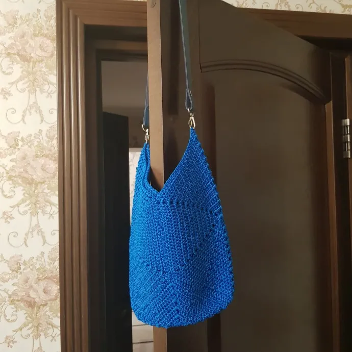 Летняя сумка сязана из пржи Yarn Art Макраме. Расход 3 мотка. Сумка на кожаной ручке, без подклада