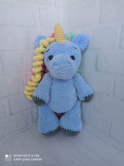 Связана ещё одна единорожка по МК Дарьи Калининой.Но теперь уже голубая.