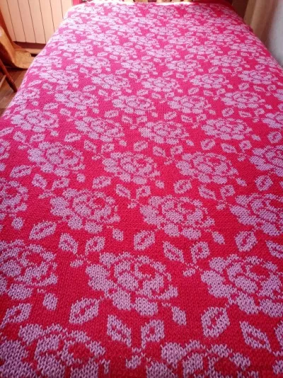 На день рождения дочери связался плед: 160 х 200 см. Двойной жаккард. Пряжа Детская новинка по 15 мотков каждого цвета.