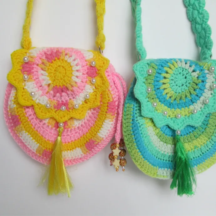 Сумки связаны из акрила. Крючок № 2.0 сумочка для девочки 3-5 лет