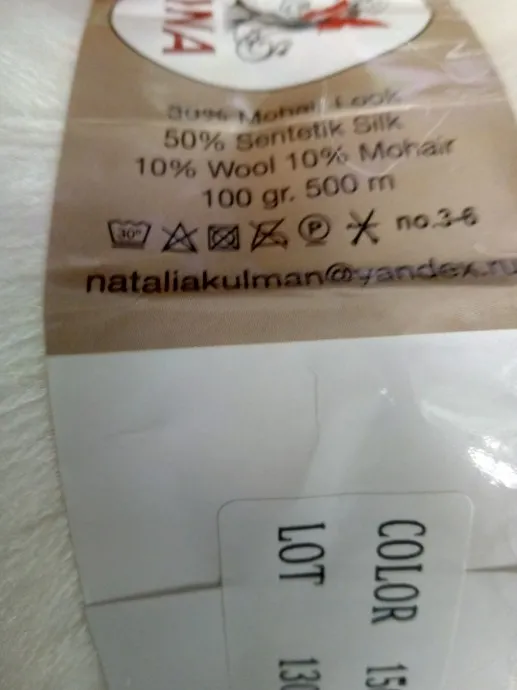 Выискала вот такую кофточку..Долго искала такой цвет..но остановилась на белом,уже была в запасе такая пряжа.Состав:синтетический шелк,мохер,шерсть.Немного покалывает..Может,со стиркой будет помягче.Спицы,по-моему,3,5.Рукав сделала длинный.Длина кофточки меня очень устроила.Рисунок несложный,вяжется быстро!