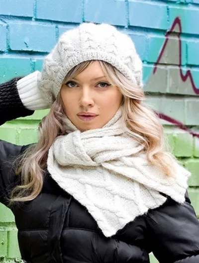 Берет и шарф с косами