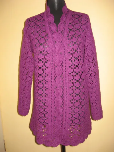 Жакет связан из пряжи A-ELITA 781м в 100гр, в 2 нити,крючок 2,5,2, 1,7. Связан с двумя швами, плечевыми, основное полотно и рукава без швов