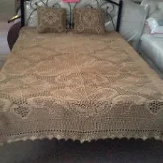Связала в подарок на день рождения внучке покрывало и маленькие думочки к нему Нитки тулип,на покрывало ушло 1500гр,крючок 1,25