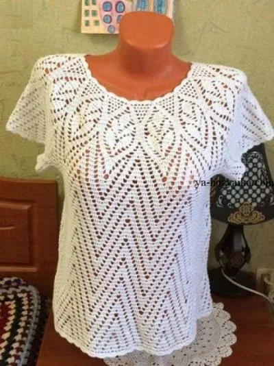 Я себе связала летнюю кофточку по этому описанию. Кокетка по моему расчету легла практически идеально, а вот добавка на тушку так чтобы сохранился раппорт рисунка не получилась, было или слишком узко или слишком широко. Вбок лесенкой пустила столбики 3 через 2воздушные петли. Правда пока никто из моих знакомых мастериц не заметил огреха Смотрится хорошо, результатом трудов довольна