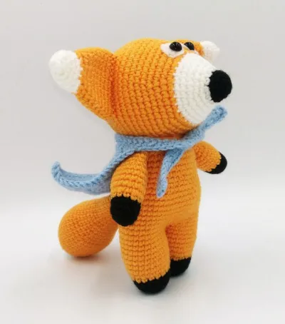 Лисёнок связан по бесплатному мастер-классу от IRINELY.ART . Размер игрушки — около 17 см, может стоять с опорой на хвост. Плащ-накидка снимается