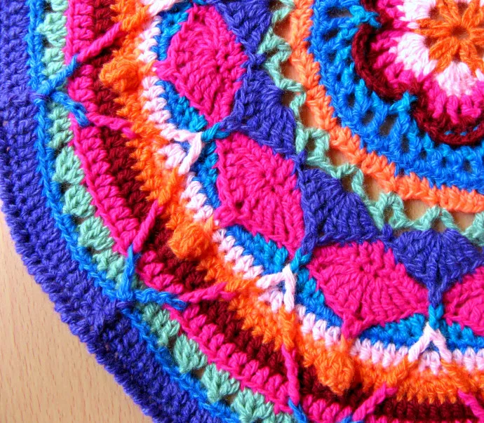 очень ярко! сейчас модно всякие мандалы вязать, вот первый коврик — прямо в тренде сделан!