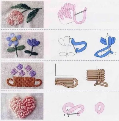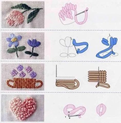 Заканчивая работу, оставьте на изнаночной стороне хвостик ленты длиной 1-2 см. прикрепите его к ткани нитками для вышивания или прихватите на время выполнения следующего стежка. Можно также вплести ленту в ближайшие стежки с изнанки.
