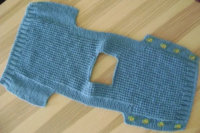 Повторять эти два ряда)))И последние 7 петель тоже платочной вязкой.Итак 18 см.За 1 см до проймы,вязала платочной уже 15 петель платочной вначале и в конце.Уже высота 19 см.делаем убавления для проймы.Для этого с обеих сторон закрываем по 7 петель.У вас осталось по 8 петель платочной и между ними узор.Вяжем так 6 см.Затем закрываем средние 22 петли.И вяжем отдельно или от двух клубков см 10.Затем набираем недостающие 22 петли и вяжем вниз(это уже спинка)см 9.затем для пройм добавляем по краям 15 петель(вяжем их платочной вязкой).И не забываем делать через 5-6 см дырочки для пуговиц.Постоянно совмещая проймы(проверяем) вяжем на нужную длину.Заканчиваем также резинкой 2/2и двойной. Горловинку обвязала крючком,рачьим шагом.