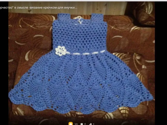 Платьице для внучки, очень мне нравятся " ананасы" крючком, вроде бы платье простенькое, а этот узор делает его нарядным.
