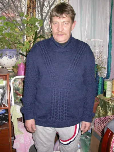 Пуловер — просто СУПЕР! Ваша работа мне больше понравилась, чем оригинал. Сидит превосходно, модель великолепна в Вашем пуловере!