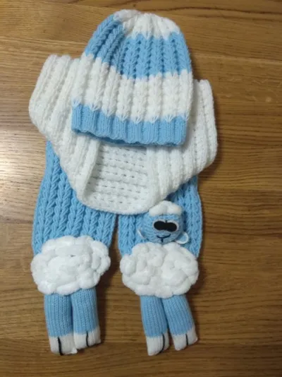 Несмотря на то, что комплект связан в одну нить, получился довольно таки теплым из-за объемного рисунка.