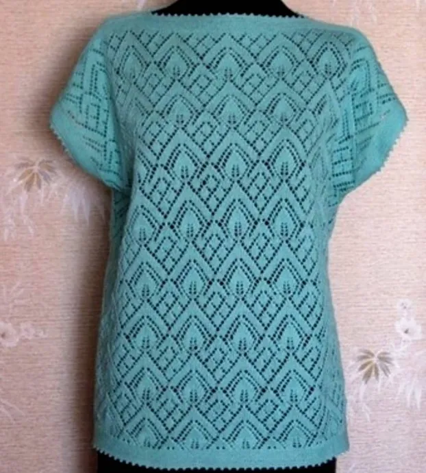 Топ прямого покроя с ажурными ромбами, вяжем спицами