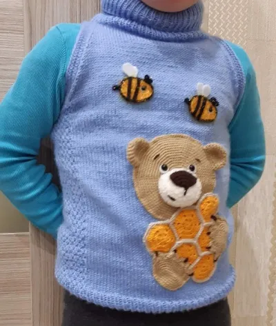 Какая прелесть Ваш жилет! Забавный мишка с пчелками придают строгому жилету очарование и делают его позитивным и радостным. Спасибо большое за Вашу работу!