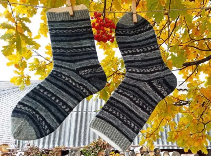 Ого! Как у тебя экономно получается! У меня остался маленький клубочек, думаю, что если бы я вязала только этой пряжей, без серой, мне бы хватило на все носки.
