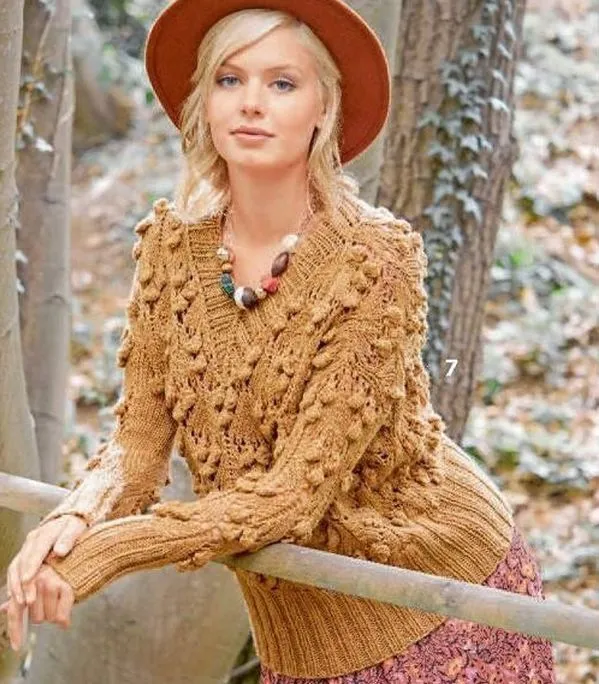 Ажурные шишечки спицами — узор для пуловера