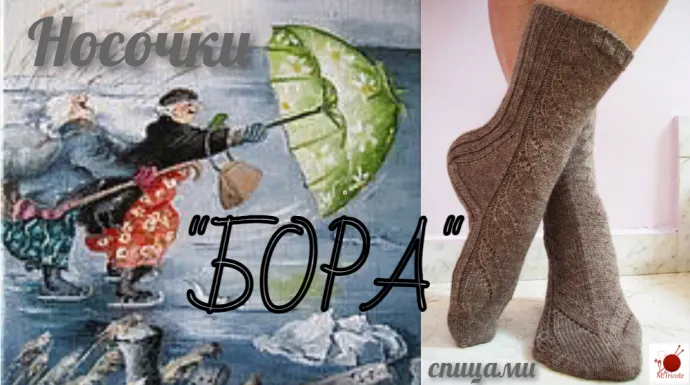 Бора налетела одномоментно. Надолго оставив нас и без связи, и без электричества. Поэтому и назвать эти носочки по-другому не было никакой возможности. В их узоре есть все: и северный ветер, кружащий осеннюю листву, и "каркасность" облетевшего сада, и ветром навеянные барханы на опустевшем пляже, и запутавшиеся в прибрежных скалах обрывки рыбацкой сети, и отливающая сталью волна, и отражающееся в воде свинцовое небо. В греческом речевом этикете есть расхожее выражение: " Μπορα εινε, θα περασει" [Bora inai, tha perasi]... Так говорят, когда хотят поддержать и утешить собеседника, имея ввиду , что трудности, беды и проблемы - временное явление. Все пройдет, очистится небо и опять засияет солнце... Так и эта модель - мелкий узор, несложный счет, кропотливость и внимательность вкупе с интересной пяткой, вроде бы "старой знакомой", но и немножко другой, приведут тех, кто захочет "пересидеть" временную непогоду, занимаясь любимым делом, к замечательному результату.
