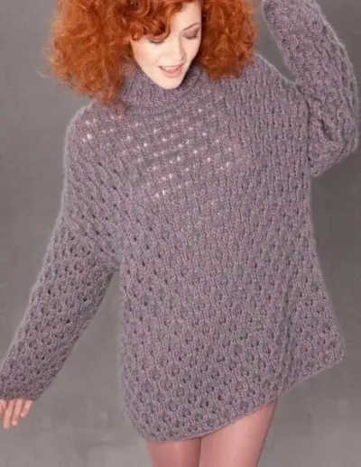 Внимание: пуловер следует вязать в три нити = 1 нить пряжи Bingo, 1 нить пряжи Silkhair цвет 12 и 1 нить пряжи Silkhair цвет 26!