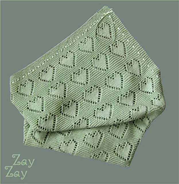 Очень красивый и нежный плед для новорожденных. Узор сердечки символизирует мамину любовь к малышу. Очень советуем вам его связать своими руками.