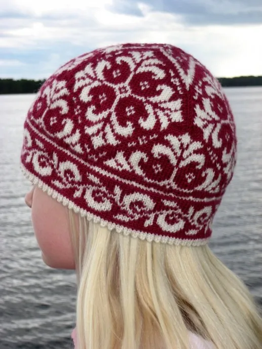 Шапочку вязала с вязаным же подкладом сверху вниз (от кольца амигуруми) спицами 2,0, потом сделала подворот, а верх шапочки уже двойным жаккардом. Всего израсходовала 140 гр. на шапочку.