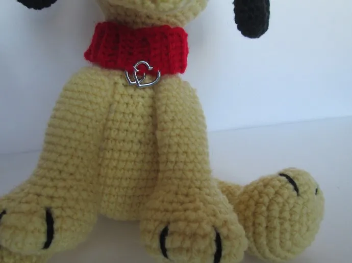 Вот какой щеночек получился. Пряжа "Тина" фирмы Аделия в 100 гр - 308 м, крючок № 2.0