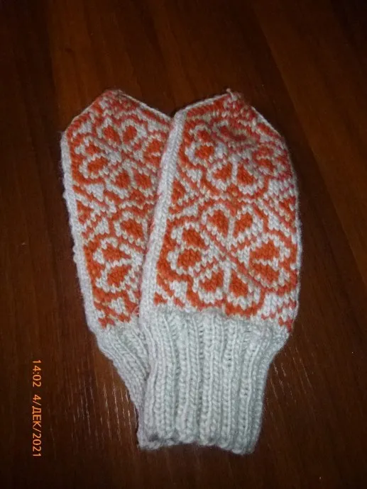 Но пряжа немного отличается от варежек. Так как она пушистая и немного другого оттенка.