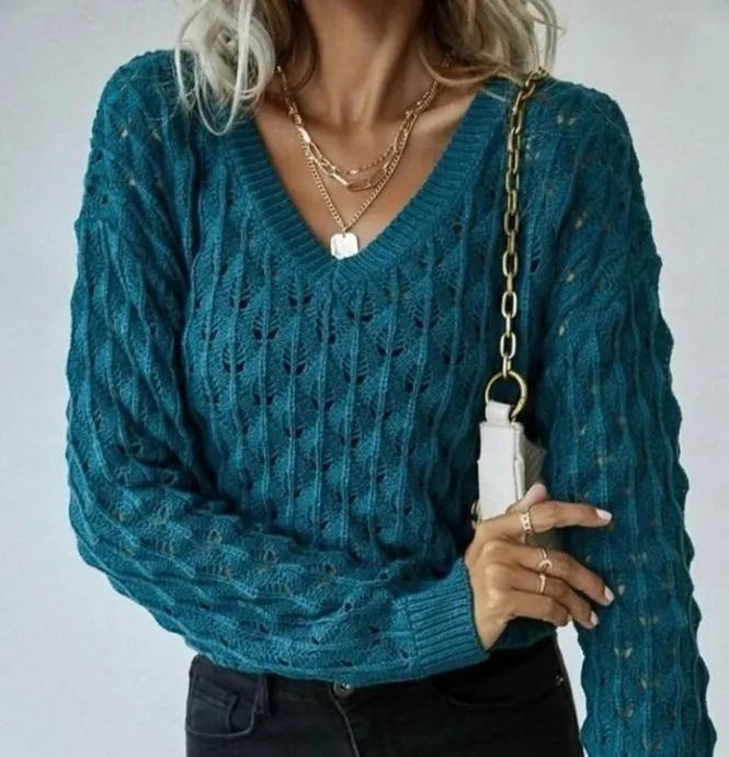 Ажурный пуловер с V-образным вырезом, вяжем спицами