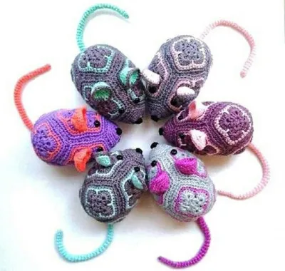 Из пряжи толщиной 300-400м/100гр (крючок №1,5-2) мышка получается длиной около 10см.