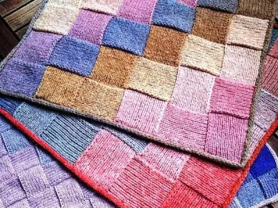 Я буду показывать все на пледе, связанном на 12 петлях, 6х6 квадратов, из пряжи Дундага 6.2, спицами №5 по следующей схеме: