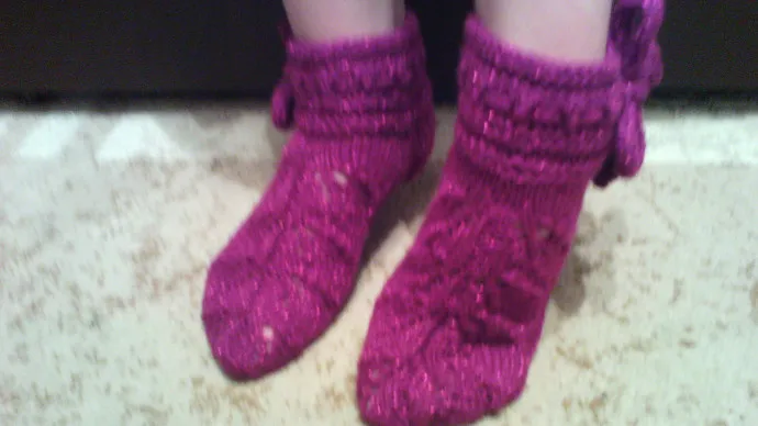 Не люблю вязать обычные носки но увидев в инете носочки с рисуночком "листики", захотелось попробовать.