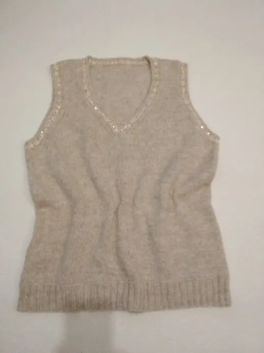 Безрукавка из итальянской смесовки с пайетками , цвета Крем. Спицы №4. Легкая , воздушная