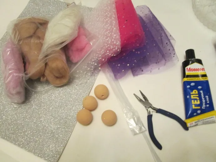 шарик для головы диаметром 2.5 см, дырочку делала концами ножниц