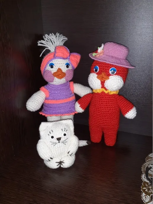 За последнее время решилась использовать остатки ниток. Перед новым годом вязала маленькие магнитики - тигрят. В инете увидела уточку и милых котят, вот что у меня получилось. Вязала крючком и спицами. Прошу строго не судить (шутка). Критику принимаю одекватно. Спасибо.