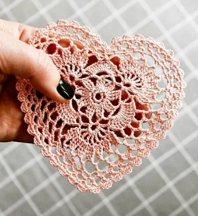 Маленькая салфеточка в форме сердечка, вяэем крючком