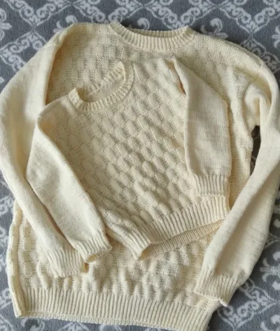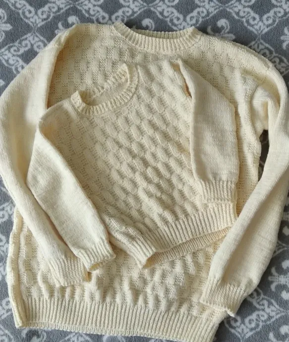 Такой свите я вязала своей внучке и выставляла здесь. А тут дочь попросила и ей такой же связать, и сыночку, если пряжа останется. И вот что получилось