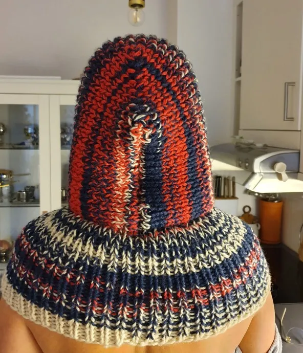 Этот снуд связан лицевой гладью в отличии от предыдущих, в два сложения нити, шерсть носочная, спицы номер 6.