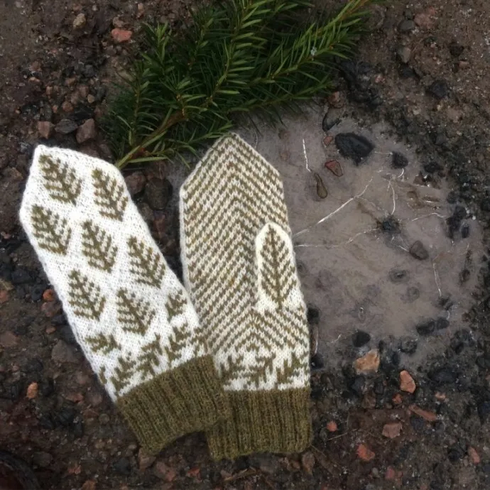 Жаккардовые варежки с елочками, вяжем спицами