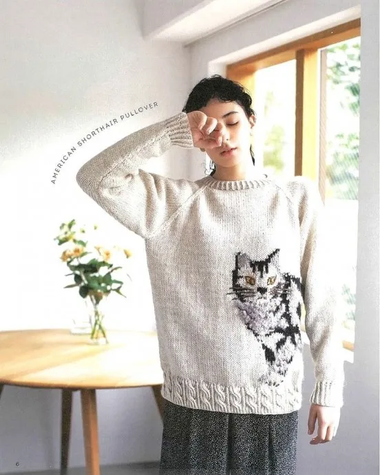 Джемпер с очаровательным котом, вяжем спицами