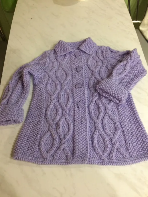 пальтишко связано спицами из полушерстяной нитки