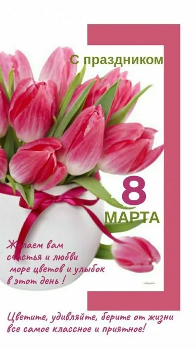 Дорогой наш Редактор и милые рукодельницы! С Днём 8 Марта! Будьте все здоровенькими (это главное!), любимыми, счастливыми и Богом хранимыми! Пусть вдохновение не покидает каждого из вас! Творите и дарите свое творчество всем родным и близким! От души желаю в этот день весеннего настроения, радостных и счастливых моментов!