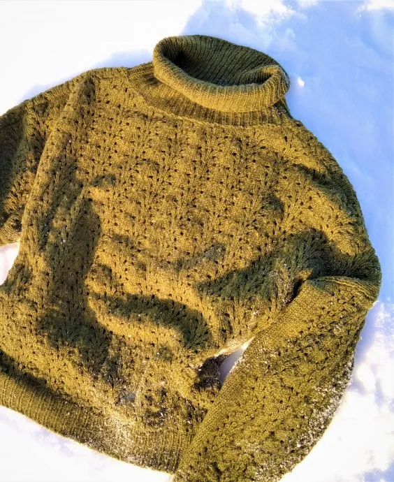 Ажурный пуловер связан из пряжи Sofit 100г/380м,состав 45%шерсть 55%шелк(искуственный).спицы 3,расход 400г