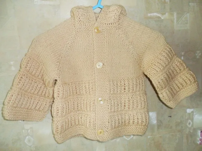 Вязаный комплект для мальчика.ALIZE lanagold classic.Color 680(светло коричневый,медок)Спицы №3 ,круговые.