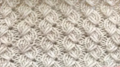 9 ряд - (лиц. сторона) кром., 1 изн., *2 лиц., затем спицу вводим на 4 ряда ниже рядом с изн.петлей,провязываем вытянутую петлю, одеваем её на левую спицу и провязываем вместе с 1 лиц. петлёй *изн., кром.