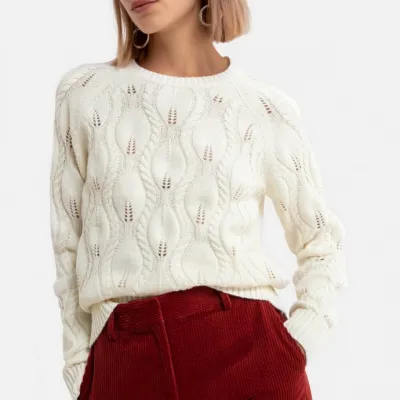 Связать такой джемпер можно как регланом снизу, так и регланом сверху (но имейте в виду, что при вязании сверху листики будут перевёрнутыми — если хотите этого избежать, просто переверните саму схему, начиная с её конца).