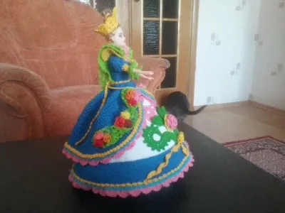 прошлую работу вязала родственнице. И, конечно, давно отдала. Внучка захотела такую же, но весеннюю, с цветами. Вот пришлось связать.