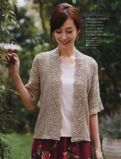 Симпатичный жакетик! Японские узоры очень привлекательны и нежны. Схемка первая, правда, не из этой «оперы». Хотя ее тоже можно использовать для основного полотна.